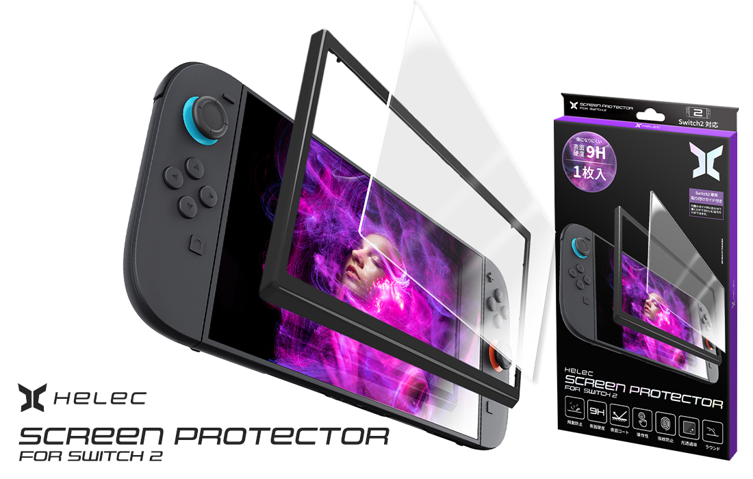 「HELEC(ヘレック)」より新登場!Switch 2 対応、貼り付け簡単ガイド付きガラスフィルム。